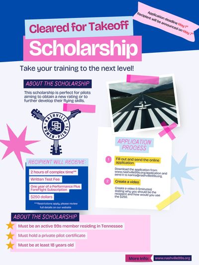 The Nashville Ninety-Nines is offering a scholarship that awards the following: